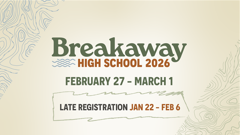 Breakaway is a weekend retreat designed to help high school students step away from the noise of everyday life and encounter God through His Word and community. Over the weekend, students will grow as disciples through intentional worship, faithful teaching, and meaningful relationships that point them toward Christ. Our prayer is that Breakaway deepens their desire to live transformed, counter-cultural lives—ready to give up anything, go anywhere, and risk everything for the sake of the gospel.